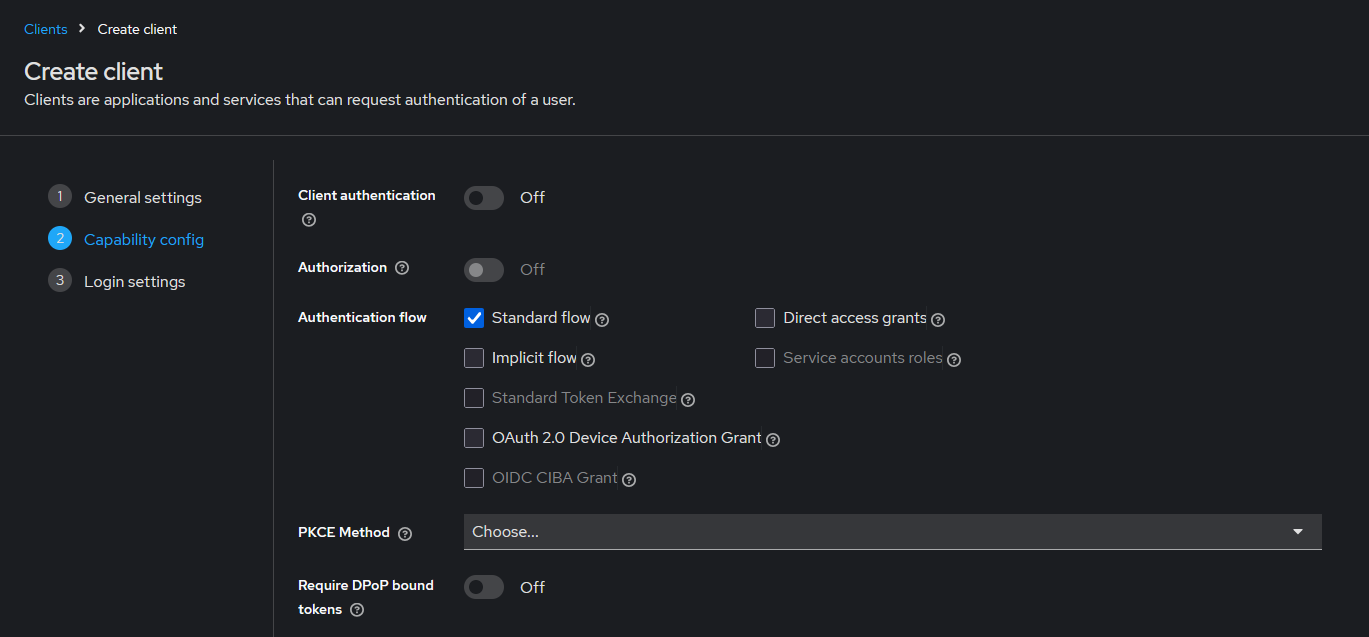- Stellen Sie sicher, dass der Authentifizierungsablauf Standard Flow aktiviert ist.