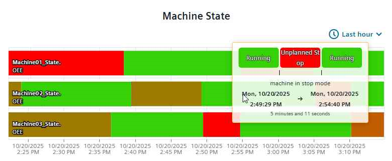 The Gantt Chart provides a time-interval view of the datapoint value. The width of each bar shows the period a certain value was present.