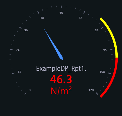 The Gauge Widget shows the datapoint value via the needle deflection inside a graph.