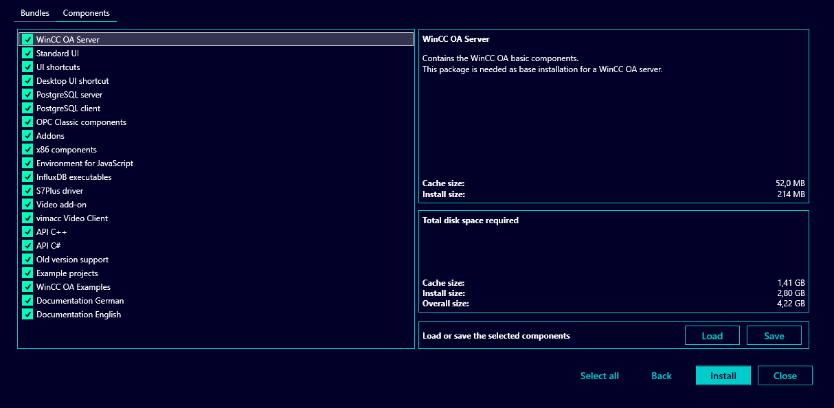 The list on the right side contains all available components. They can be checked and unchecked as desired for a custom installation. The concise description of components is also available here.
