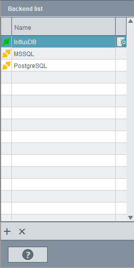 An InfluxDB® backend, An MS SQL® and one PostgreSQL® backend. These three backends are always shown since these are available by default.