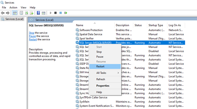 - Restart your computer. When a WinCC OA project and an MS SQL® Server are located on