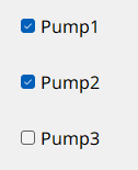 Check boxes are provided to allow selections from several pre-defined alternatives. They are used, for example, for setting datapoint values or triggering actions such as switching on the first and third pump of the three installed pumps.