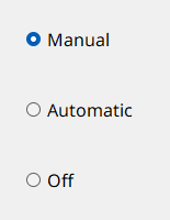 Radio boxes are provided to allow selection of only one option from several pre-defined alternatives. They can be used, for instance, for setting datapoint values or triggering actions such as switching between automatic mode, manual mode and "off".