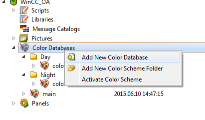 Click on the folder "Day" and add a new color database. Repeat this step for the "Night" folder (see figure above).
