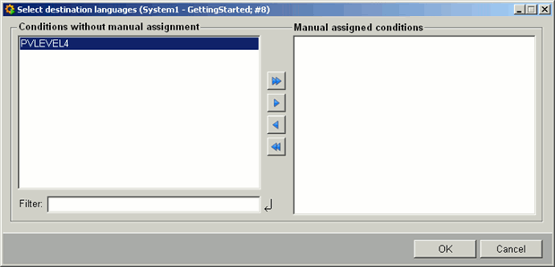 Via this button additional (not over-configured) conditions can be added to the table of the panel above. This can be done although you filter manually assigned (meaning over-configured) values.