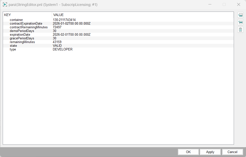| Defined (v)alue range violated | This bit is "1" if a violation of the WinCC OA value range is detected. The WinCC OA value range of a variable is the maximum permissible range for this variable in the control system. It can be configured separately for each datapoint element. If you do not configure this range, the limits specified for the respective data type apply as listed in Table 1. |