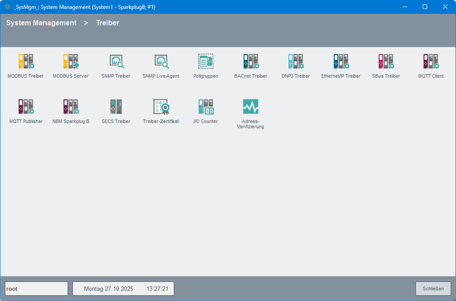 - System Overview: Opens a panel with overviews and connection states of redundant, distributed and single systems. The documentation of the system overview panel contains the relevant details.