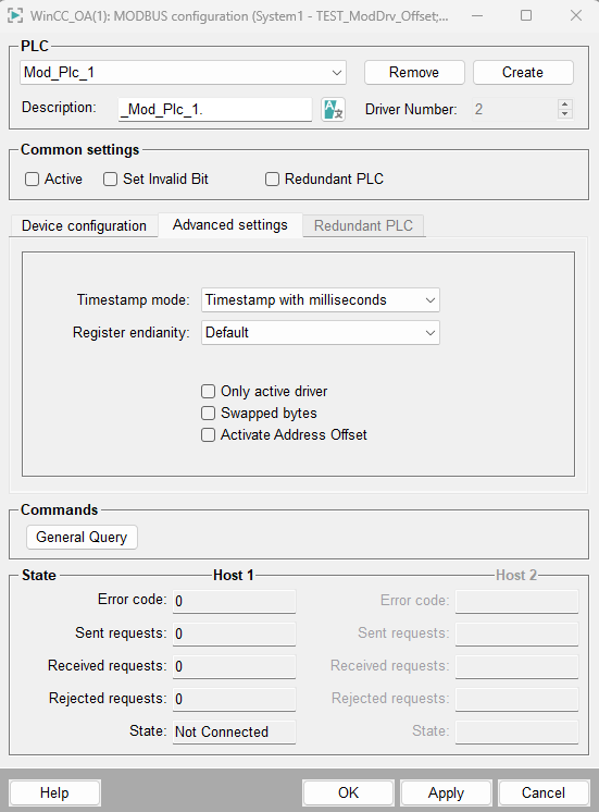 This option defines that only the active driver connects to the PLC. You must use this option in a redundant WinCC OA system if the PLC only supports a single Modbus client connection.