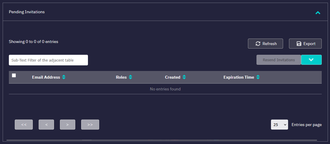 When new users are invited into the group, the invitations that have not been accepted yet are shown in this section. All entries are shown with the date of their creation as well as an expiration time.