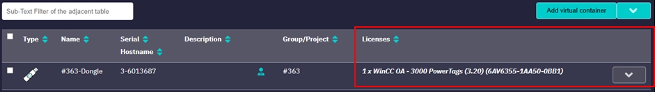 Digital entitlements managed within the portal, representing the right to use specific WinCC OA software modules or features. Licenses are assigned to projects and can be distributed to users or devices as needed.