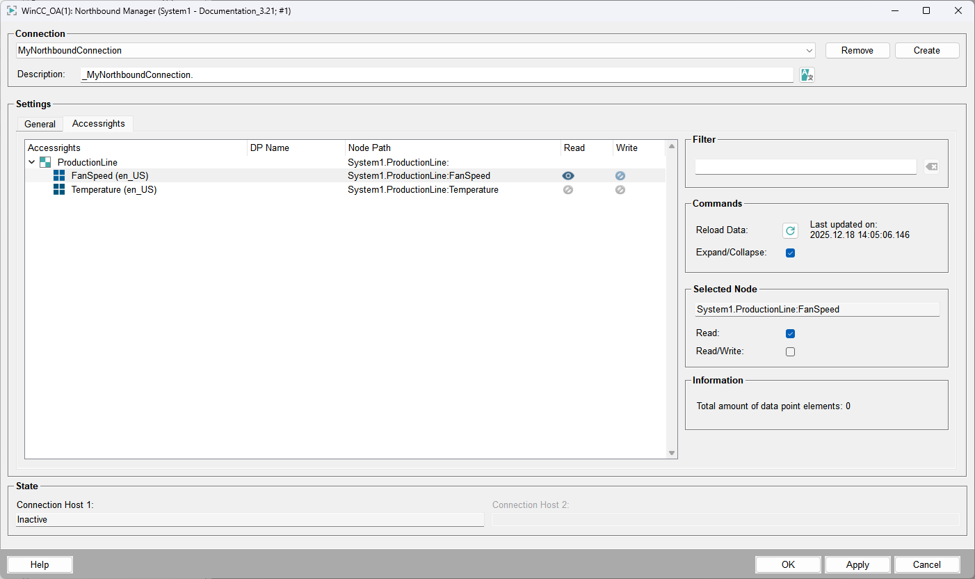 Select Plantmodel as the data source in the Northbound Manager.