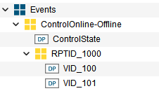 | (Report DPEs - with annotation: VID_<Unsigned ID> when AnnotateEventReportsEnabled is True, otherwise no specific id) | RPTID_<RPTID> | DP | Any datatype from Data Types | All nodes with the RPTID_<RPTID> as parent are considered as report DPEs. These DPEs configure which data is handed to the host when an event gets triggered. DP nodes represent a value and structure nodes represent the start of a list element with underlying DP nodes or nested lists. |