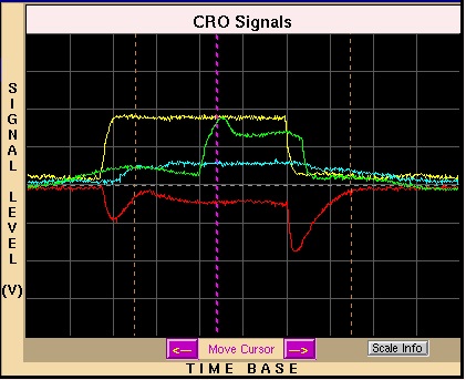 If you are planning to use amplitude and time division plot and planning to display peak-peak and other details similar to CRO then you need to prepare your own CRO widget. You may explore trend widget and check if it can meet your basic CRO requirements.