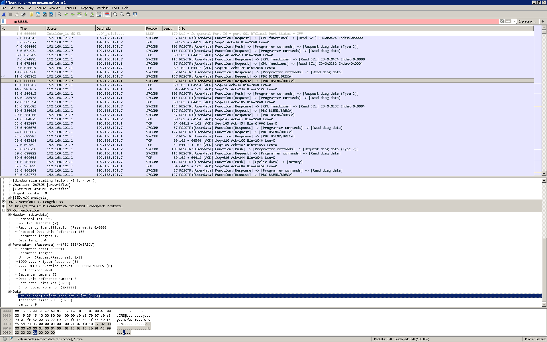 Also please have a look at BSEND parameters and screenshot of Wireshark output. It seems that it returns an error.