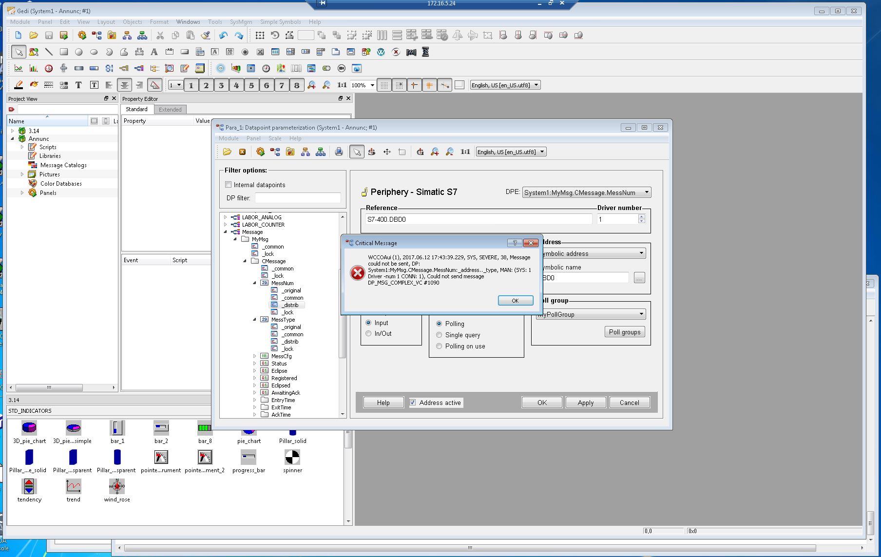 It was only when I opened the para module that I discovered that for some reason, all the tags have lost their S7 periphery address config (I was using the native S7 driver) and have been replaced with a _dstrib entry and a driver type of SSI. I resolved myself to having to add the periphery address again from scratch. If this wan't bad enough, when I tried to add a S7 periphery config to the tag, the configuration window appears, which I fill in, but when I hit apply or OK I get a system error (see attached image).