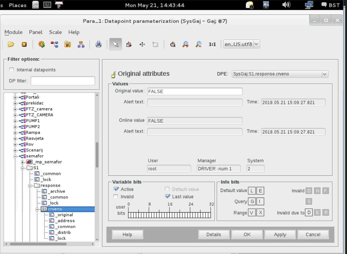 We have a problem with a timestamp in para in a redundant system. Every datapoint that is set externally (from driver or some protocol adapter) has wrong timestamp. In the attached image you can see a real time (top of the image) and the time that is set by a driver. When i try to set some datapoint from panel, it writes correct timestamp. Also, when i execute getCurrentTime() function, it returns correct time. And when we get values by polling, the miliseconds part changes instead of the seconds part (e.g. if the polling interval is 1000msec, the time changes in this way: 15:09:30:161, 15:09:30:162, 15:09:30:163 etc., and not 15:09:30, 15:09:31, 15:09:32...)