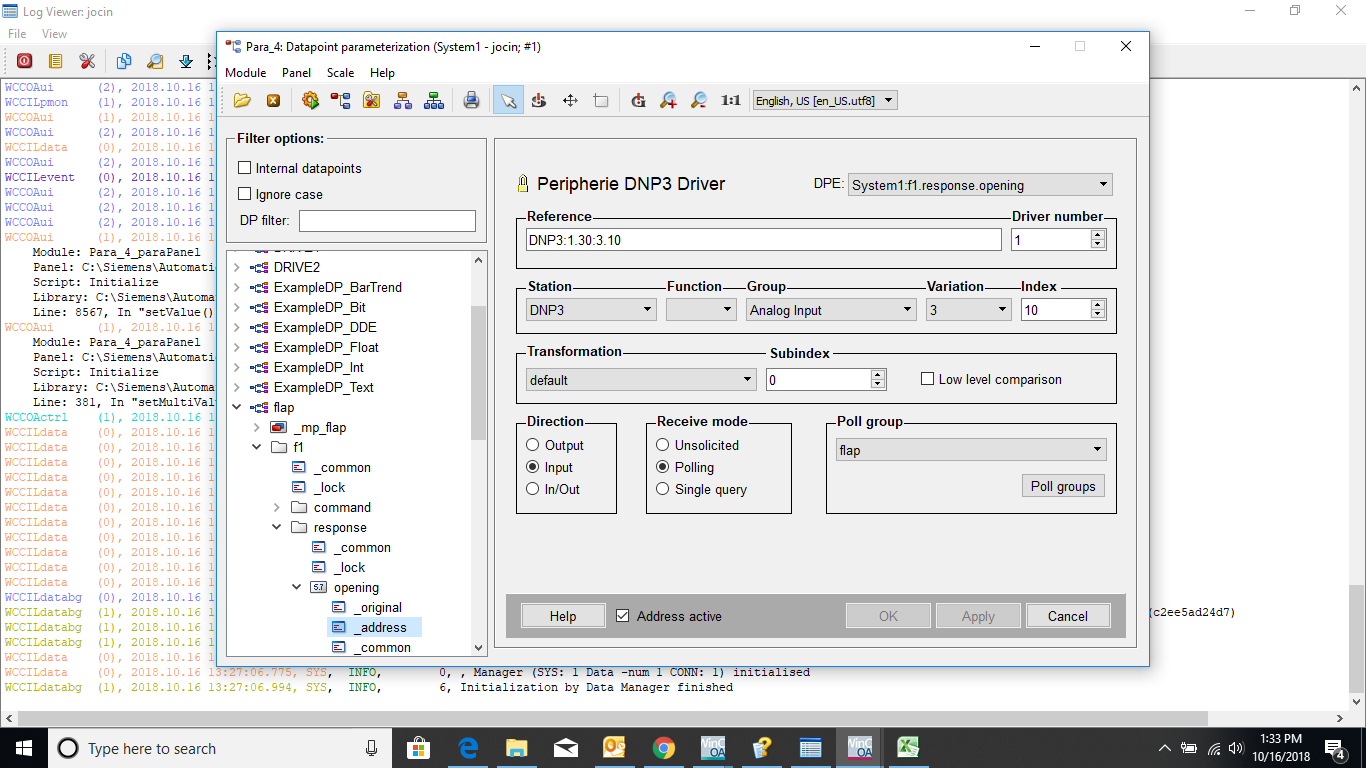 https://www.winccoa.com/fileadmin/image ... iphery.png I created a project and tried to read the values from PLC through DNP3 driver.But it showing these errors